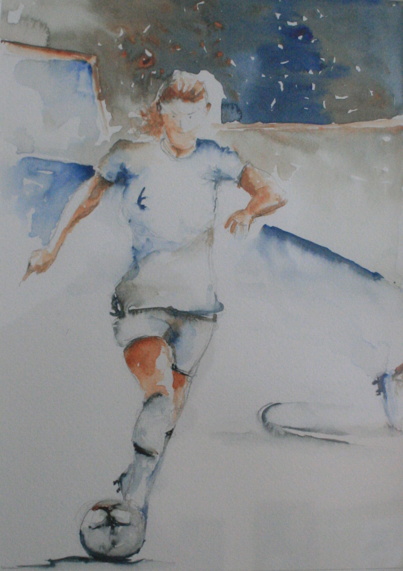 Belle Aquarelle dans un style dynamique et épurée sur le thème du football féminin